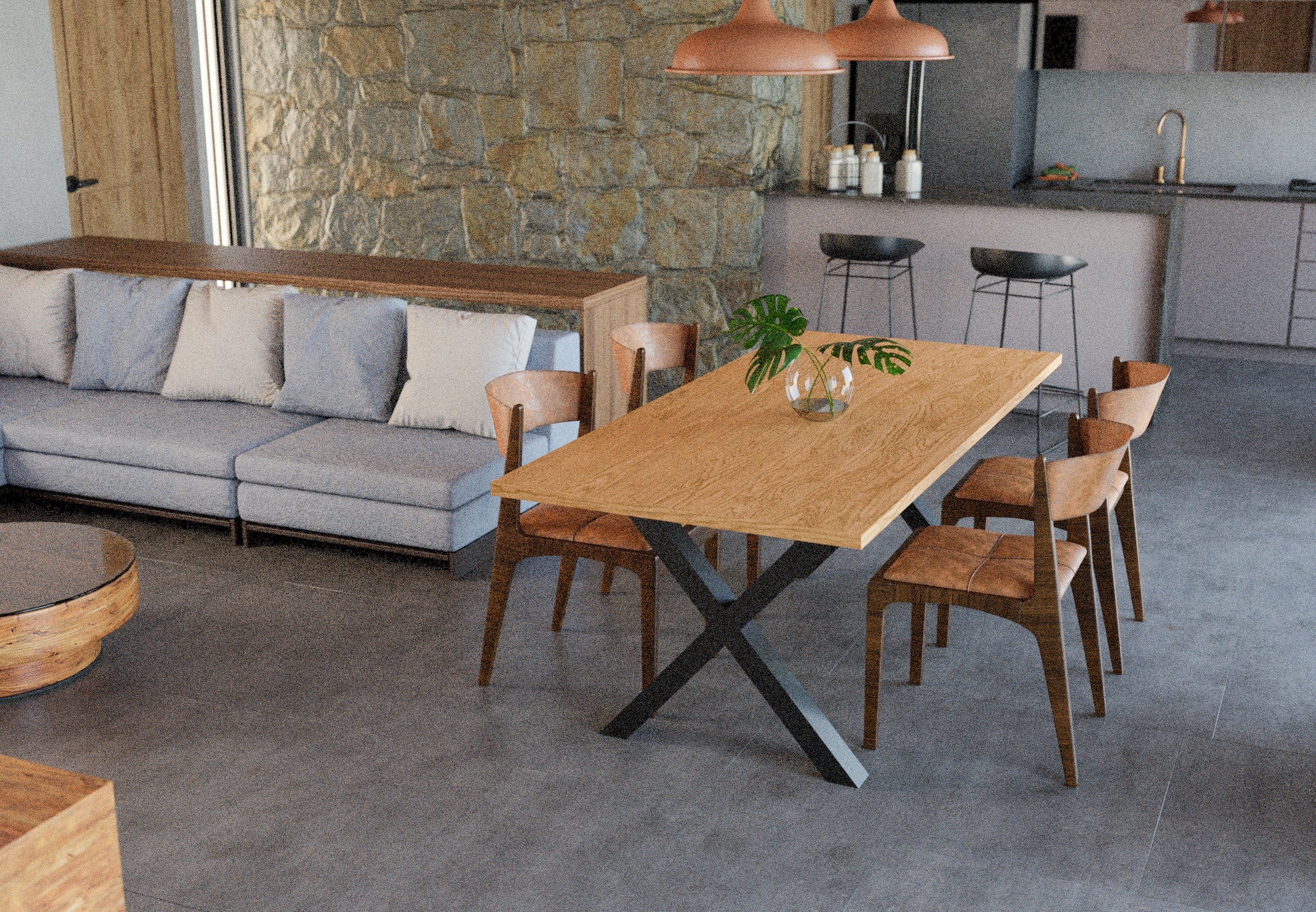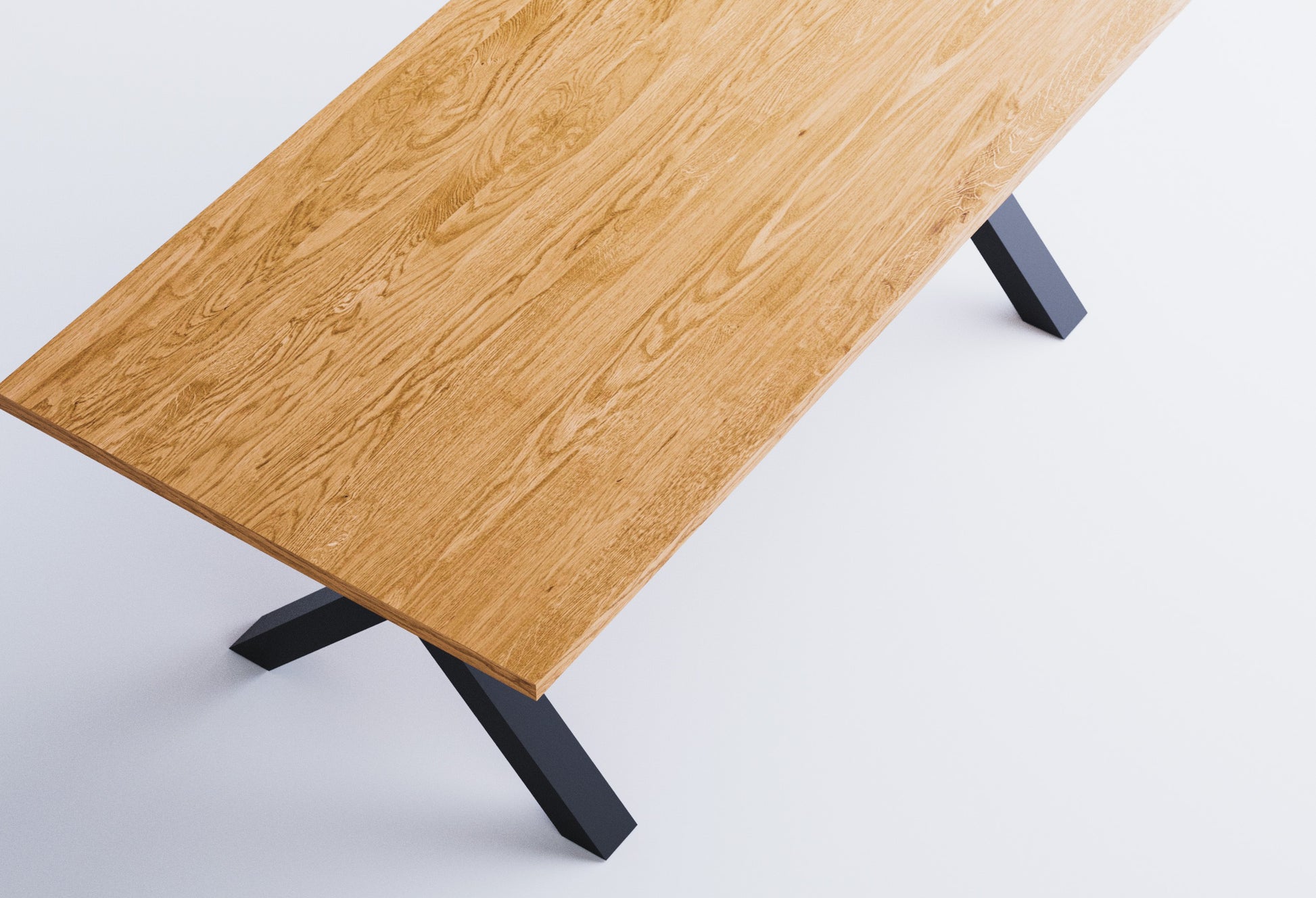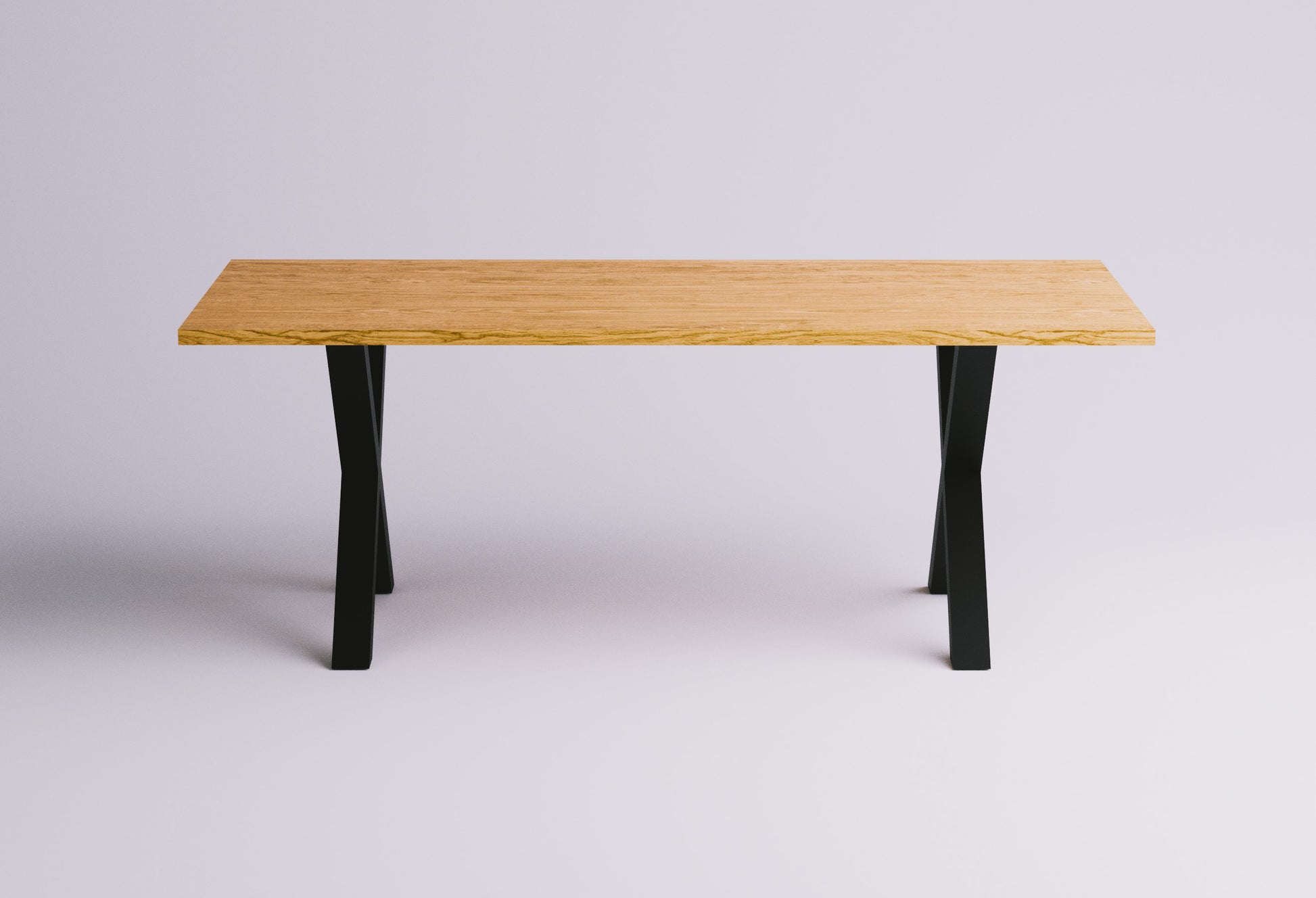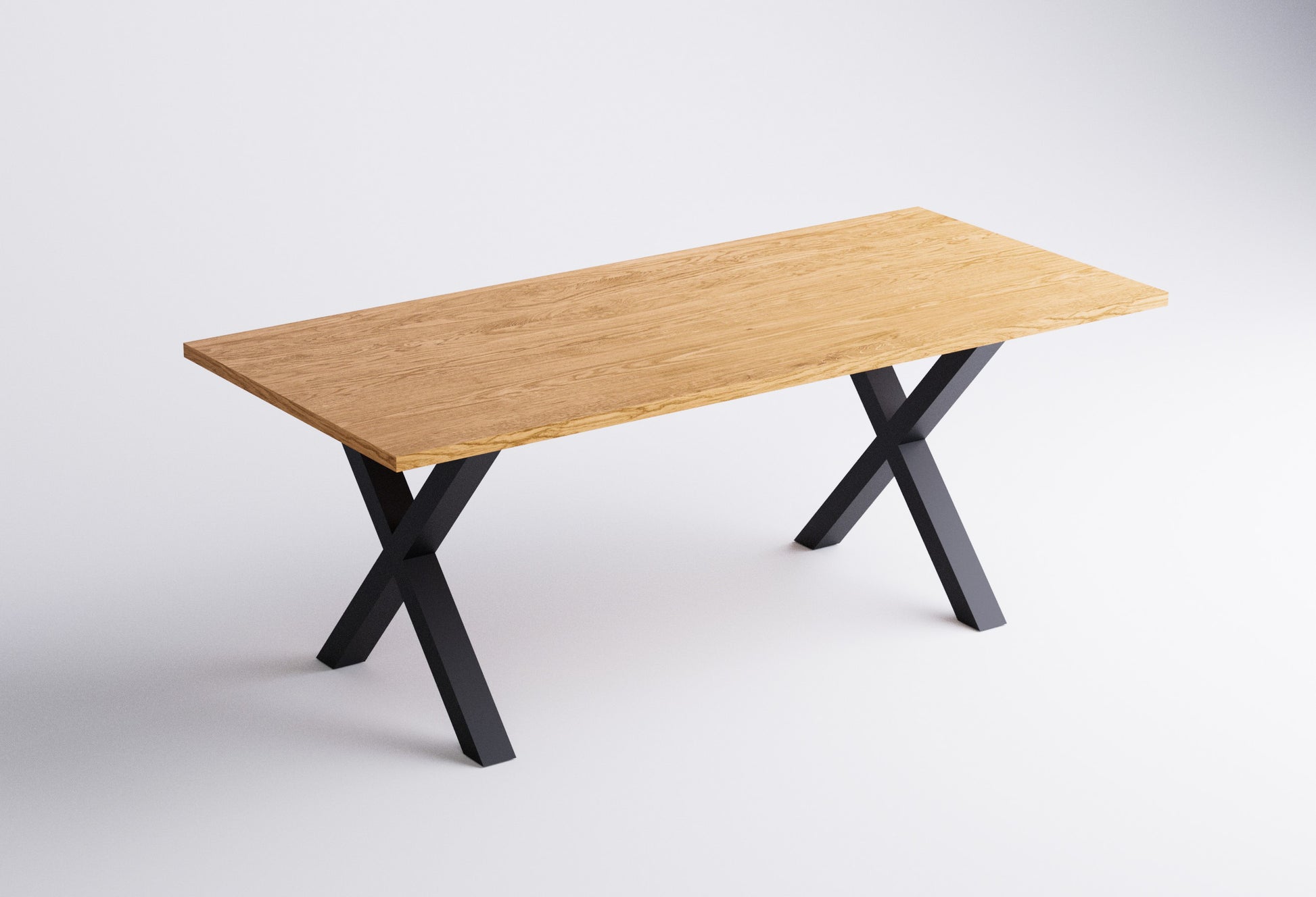 Elevate your dining space with our handcrafted modern industrial X Frame Oak Dining Table. This striking table features a solid oak wood top with a natural finish, offering a warm, rustic charm that pairs beautifully with any decor. The sturdy black steel X-frame legs provide a bold, contemporary contrast, ensuring durability and style. Perfect for both casual family meals and elegant dinner parties, this table combines industrial design with modern sophistication.